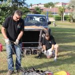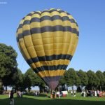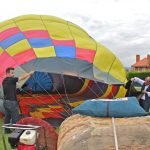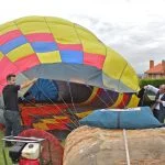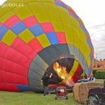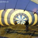 A continuación, extendemos la vela del globo en el suelo y comenzamos su inflado ayudándonos para ello de un ventilador de gran potencia, mientras sujetamos firmemente la boca de la vela para que entre el aire.