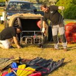 Quedaremos en un punto de encuentro acordado, que os confirmaremos un día antes del viaje en globo, en función de la previsión meteorológica y desde donde despegaremos tras la preparación del globo de la que podéis disfrutar. Comenzaremos preparando la barquilla y el quemador.